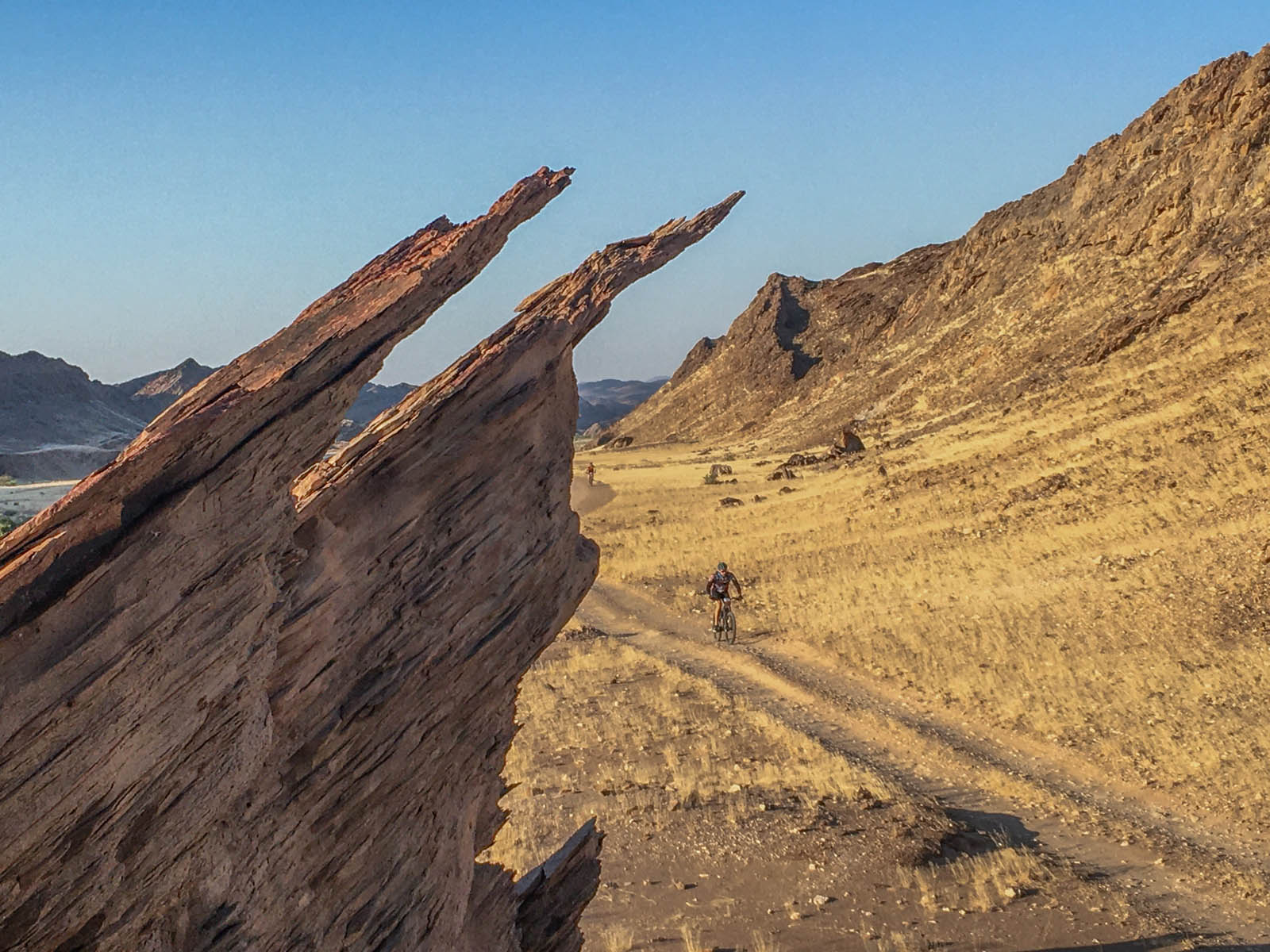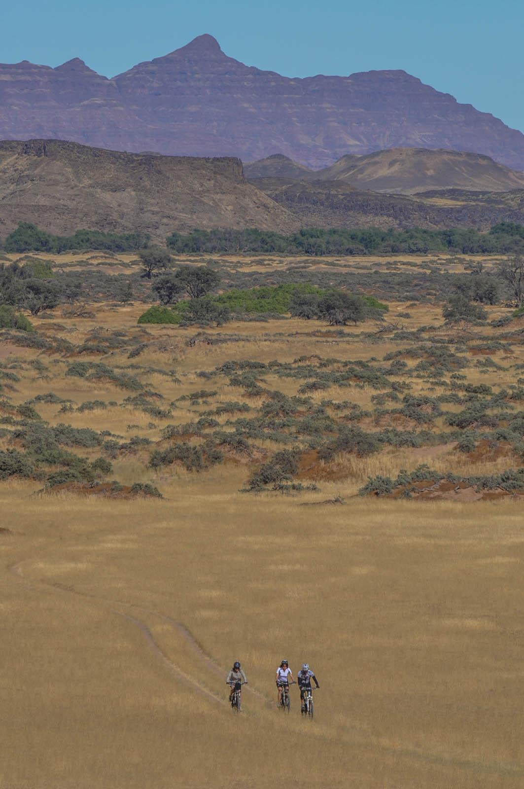 The Damaraland is Namibia Active Adventures’ specialist area. This is one of the most remote places on this planet and a last true, free wilderness areas. No sign of any civilisation for the next few days. Looking from above we see how the land was moved and shaped over 300 million years ago. Volcanic craters and huge layers of soil have been turned on their side during the Gondwana rift, leaving behind a raw and rugged wilderness. It’s hostile and seemingly deserted from all living kind, but then there are the dry riverbeds which have carved their way through the rock and gravel to leave behind a lifeline for animal and plants. Highly adapted animals and plants have found their home here and are surviving without human interference.